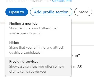 – روی دکمه Open to کلیک کنید که در بالای پروفایلتان نمایش داده میشود.
